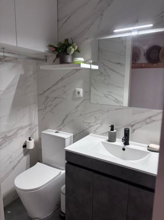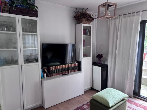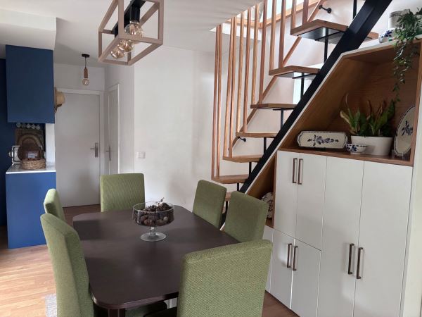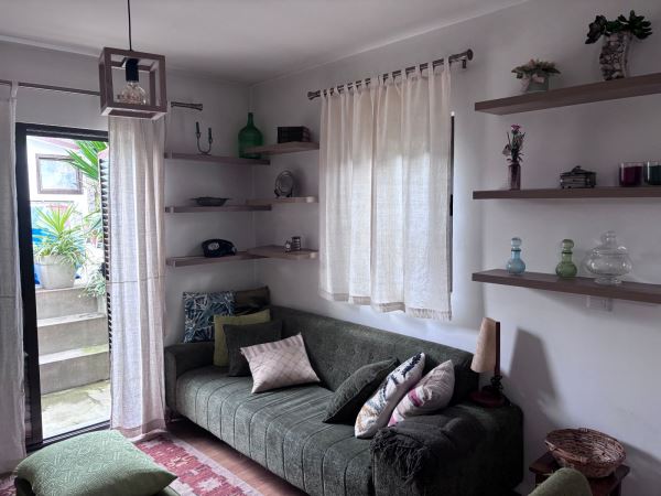 Com cerca de 80 m² de área habitacional, a casa dispõe de dois quartos, casa de banho, cozinha funcional e completa, sala de jantar e sala de estar, criando um ambiente acolhedor e equilibrado para o dia a dia.